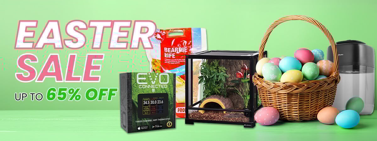 For substrate we have packed a coco brick, which just needs to be soaked in water to expand and provide fresh coco soil for the enclosure, as well as Hydro Rocks and Hydro Matting, meaning you can easily set up a reservoir system underneath the soil. This reservoir is ideal for maintaining humidity levels, as the water stored here is soaked back into the soil, keeping it moist and therefore raising the humidity. This is also really important if you are using live plants, as they need this water supply, and it is easy to just top up the water to ensure the rocks at the bottom are submerged. The live plants themselves also contribute towards the humidity levels, meaning you are less likely to have highs and lows of humidity, when you spray for example, but a more stable long term humidity range throughout the day. For more information about setting up for live plants and how the water reservoir works, see our blog about Bioactive enclosures.